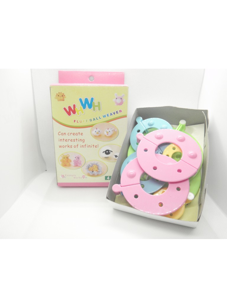 Pomponera plástica con apertura de sus argollas, que permiten hacer de manera más fácil y práctica los pompones para los proyectos de tejido.