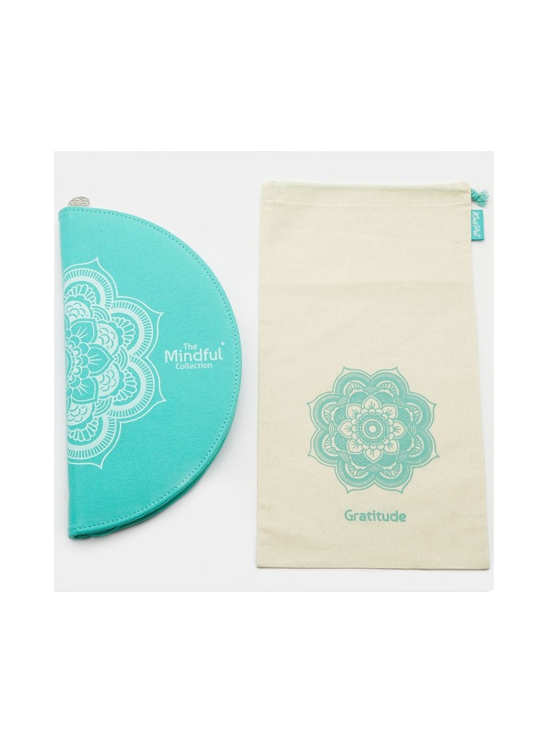 Set de Palillos Mindful en su kit Gratitude incluye doce tamaños de agujas intercambiables. Las puntas de estas agujas de acero inoxidable de primera calidad vienen con un envase en una caja de tela circular con motivos florales , utilizando los colores temáticos de la colección.